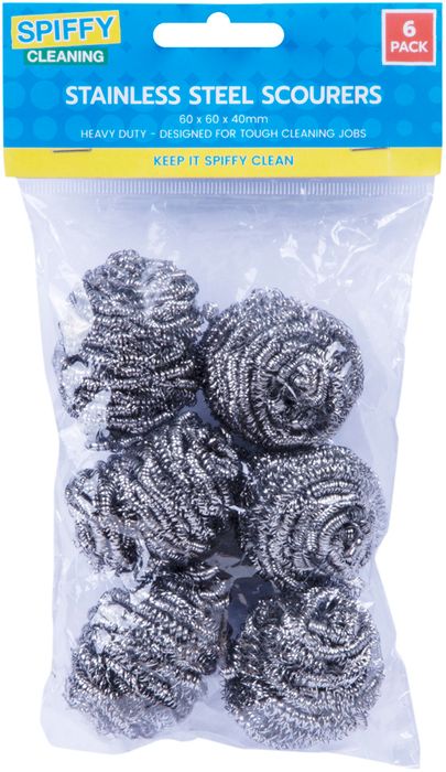 These Stainless Steel Scourers are heavy duty and designed specifically for tough cleaning jobs. Keep it Spiffy clean. 6 pack Size: 60 x 60 x 40mm