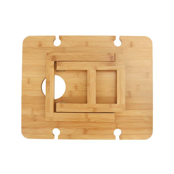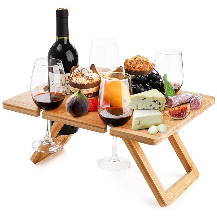 Colour: Natural Made form 100% Bamboo Easily holds 1 bottle and 4 glasses Ideal for serving food and drinks on Fully portable picnic table Folds flat for easy transport and storage Wipe clean with a damp cloth Dimensions (approx. cm): 48 x 38 x 25 (L x W x H)