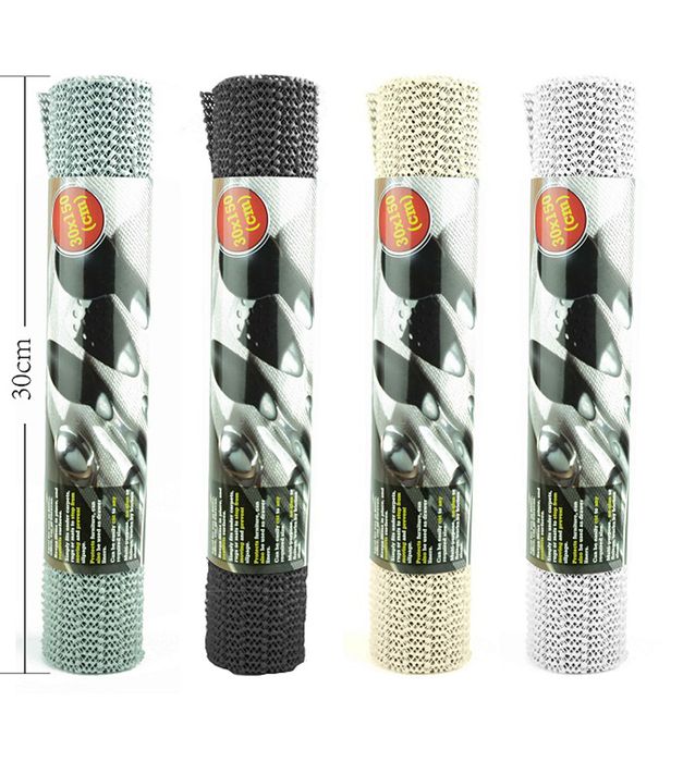 Ideal for use in home, office, car or caravan. Keeps items in place, and protects surfaces. Simply fits under carpets, rugs or mats to stop from moving and prevent slipage. Protects furniture, can also be used as drawer liners. Can be easily cut to any required size. Multi-purpose, no glue or fixings, works by friction alone. Features: Colour:Black, white, beige and grey assorted Single product: 30*6cm, 0.101kG PDQ:31*21*16cm,1.25Kg Material: PVC foaming + PET NET