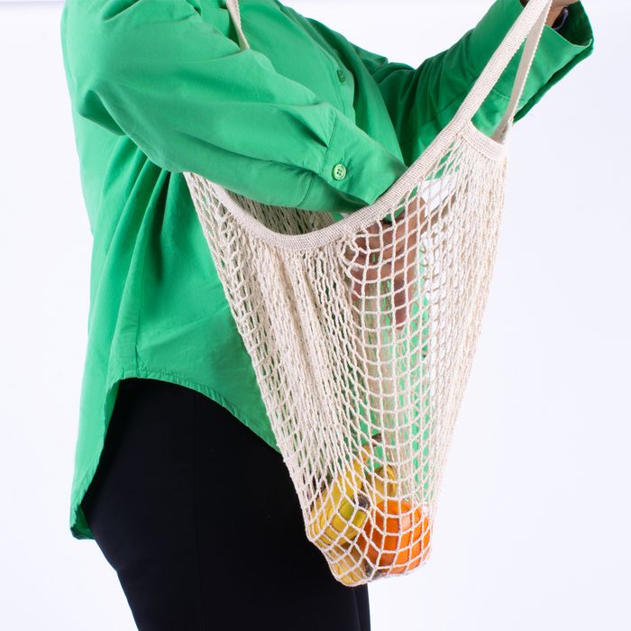 Shop responsibly with this 100% cotton net produce bag. Comes in natural and green. Open weave net allows for "breathability" so perfect for those trips to the market. Rolls into handy portable size so you can keep several in the car. Never use nasty plastic supermarket bags again!