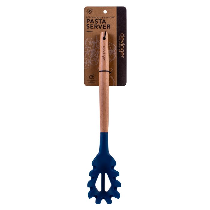 CLEVINGER BEECHWOOD & SILICONE PASTA SERVER NAVY
