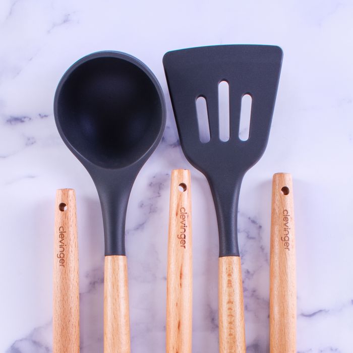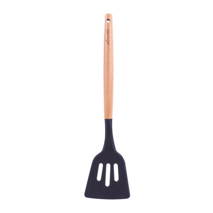 BEECHWOOD & SILICONE SLOTTED TURNER (CHARCOAL)