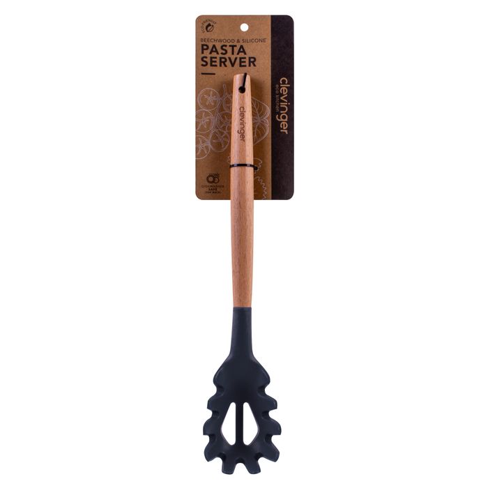 Create culinary masterpieces using our Eco-friendly range of utensils. The stylish handle is made from sustainable beechwood while the head is food-grade, heat resistant silicone. Although this pasta server can be put in the dishwasher, handwashing is recommended to ensure the beechwood handle retains its natural beauty.