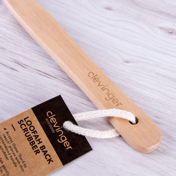 CLEVINGER ECO LOOFAH BACK SCRUBBER WITH WOOD HANDLE