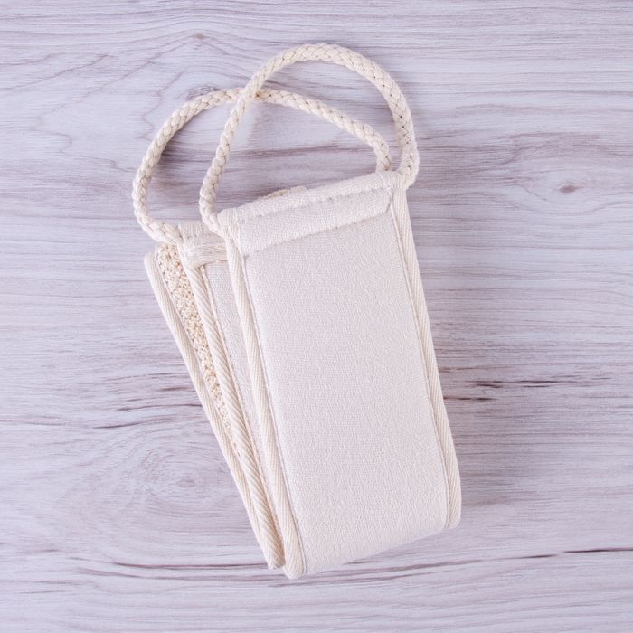 REACH THOSE "HARD-TO-GET-TO" PLACES WITH THIS FLAX AND SPONGE BACK SCRUBBER. NATURAL FIBRES GENTLY EXFOLIATE LEAVING SKIN SOFT AND SMOOTH. USE THE REVERSE SPONGE SIDE TO SUDS AND CLEANSE. WASH & AIR THOROUGHLY AFTER USE TO PREVENT BACTERIA BUILD-UP.