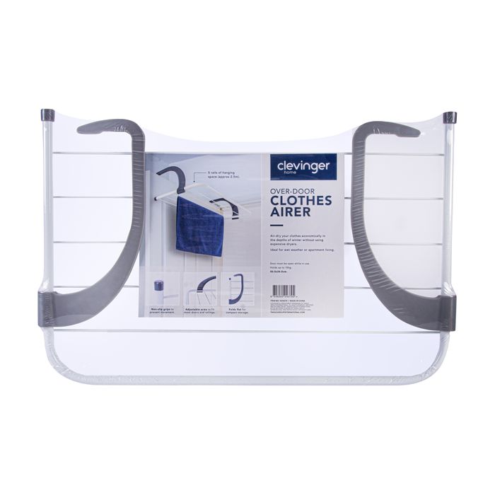Air-dry your clothes economically in the depths of winter without using expensive dryers. Ideal for wet weather or apartment living. Arms fit over any standard door to provide 5 rails of hanging space (approx 2.5m). Size 50.5*34.5cm. Folds flat for compact storage. Wipe clean with warm soapy water when necessary. Door must be kept open when in use. Recommended for up 10kg.