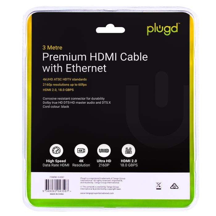 SPECS AND FEATURES:HDMI Cable with Ethernet - 3M