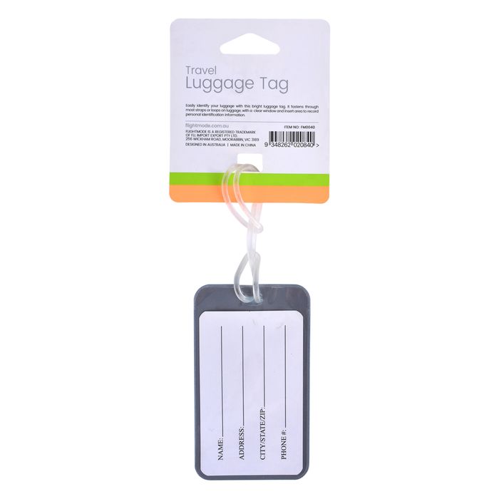 Travel luggage Tag Easily identify your luggage with this bright luggage tag. It fastens through most straps or loops on luggage, with a clear window and insert area to record personal identification information. Size: Material: Colours: Packaging: