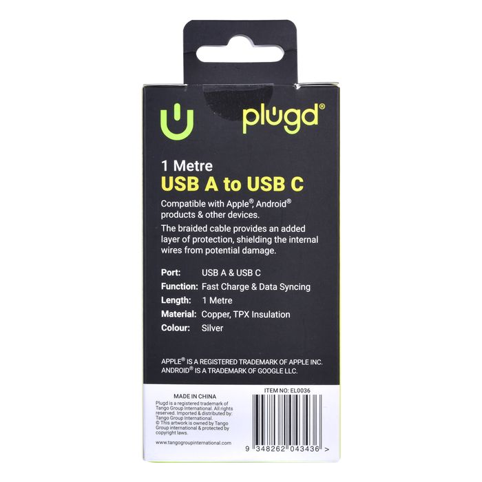 Super-fast charging cord that also syncs data. Suitable for Android and selected Apple products. Copper wire with TPX insulation. 1 metre white coloured cord.