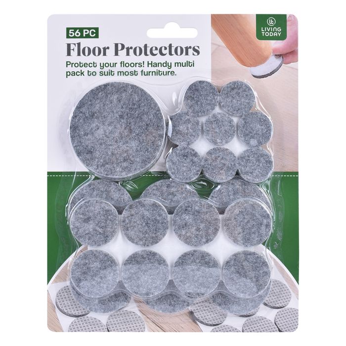 Perfect for the home or the office, this 56-piece set of felt surface protectors stops your floors getting scuffed up by the bottoms of chairs, tables, wardrobes, desks and more. In many assorted sizes to fit any requirement. Self adhesive and easy to apply