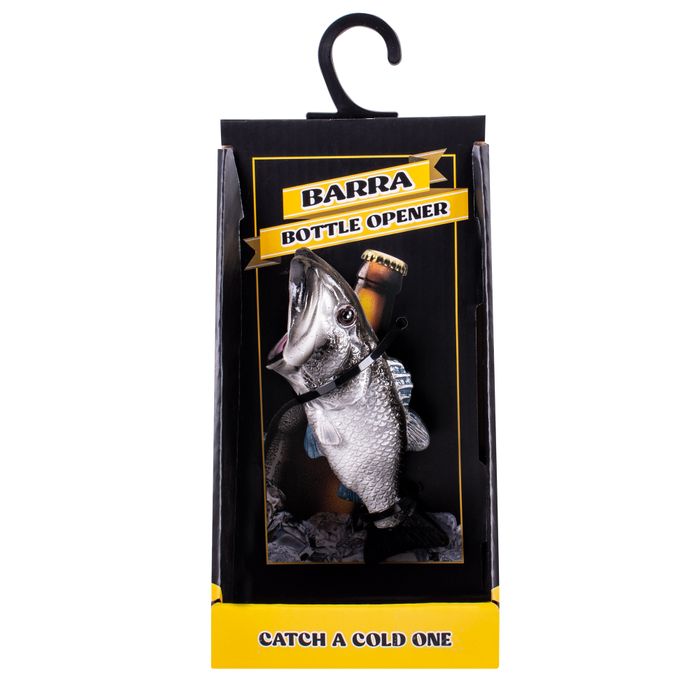 Novelty Barra Bottle Opener perfect for the budding angler. Dimensions: 5*3.5*13.5cm