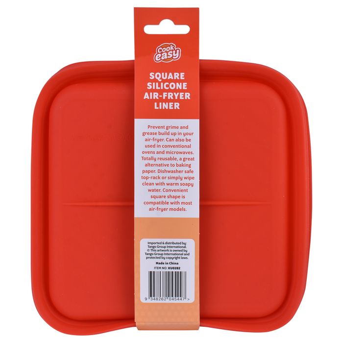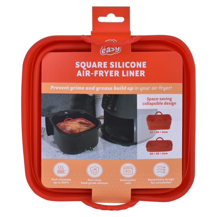Prevent grime and grease build up in your air-fryer. This food-grade quality silicone liner is heat resistant to 230 degrees C and can be used in air-fryers, conventional ovens and microwaves. Totally reusable, a great alternative to baking paper, this silicone liner is both safer and better for the planet. Dishwasher safe top-rack or simply wipe clean with warm soapy water. Collapses for space-saving storage. Open dimensions: 20.5*20.5*7cm, closed dimensions: 20.5*20.5*4cm. Convenient square shape is compatible with most air-fryer models.