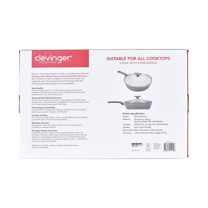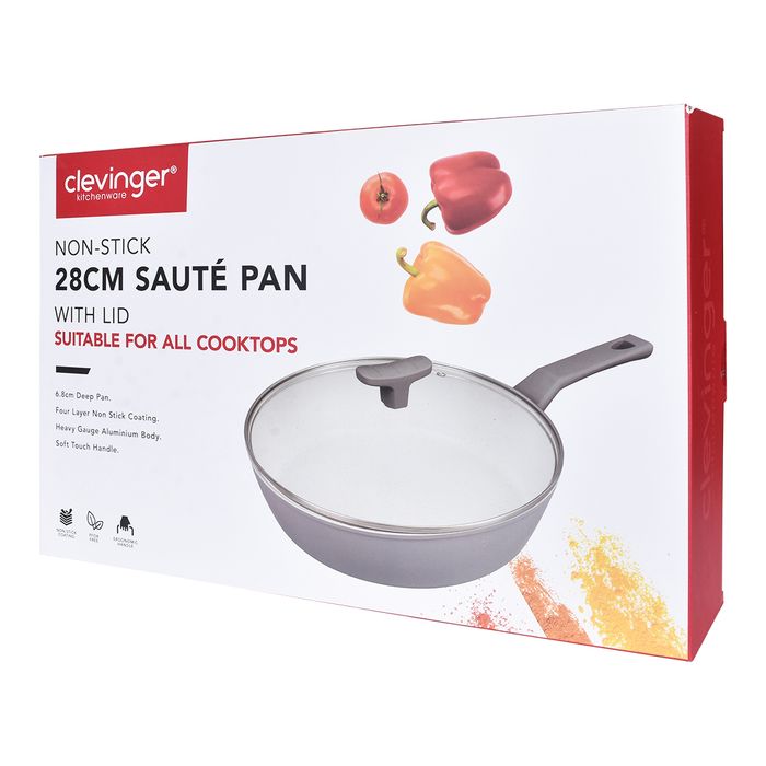 CLEVINGER 28CM NON-STICK SAUTE PAN WITH LID (white and grey)