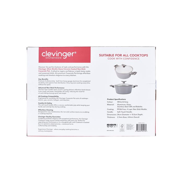 CLEVINGER 24CM NON-STICK CASSEROLE WITH LID(white and grey)