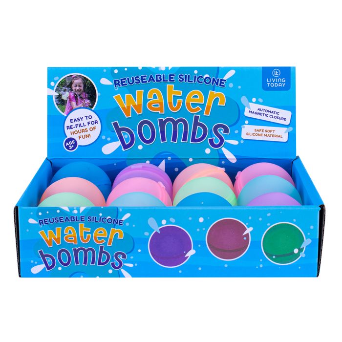 Hours of fun in the sun! These silicone water bombs are easy to fill from tap or pool. Automatic magnetic closure prevents leaks and is perfect for little hands. The soft silicone body opens upon impact without causing injury. Re-useable and longer lasting than traditional water balloons. 6 colours to choose from, these water bombs will keep every-one entertained during hot, Summer days.