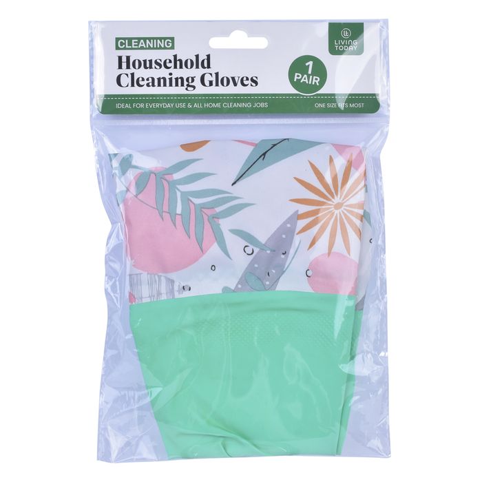 HOUSEHOLD LATEX CLEANING GLOVES 2 ASST (Green / Pink)
