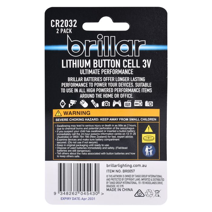BRILLAR LITHIUM BUTTON CELL 2PK - CR2032