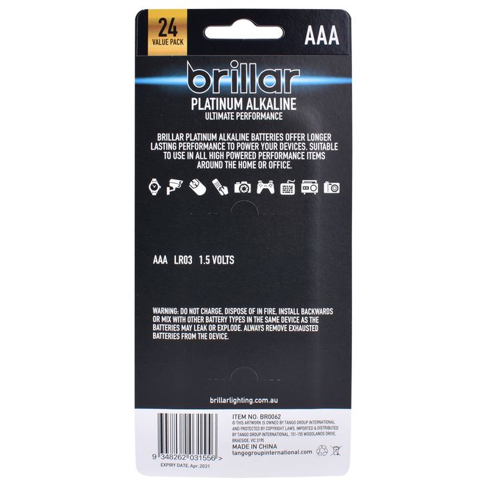 PREMIUM ALKALINE AAA BATTERIES - 24 PK