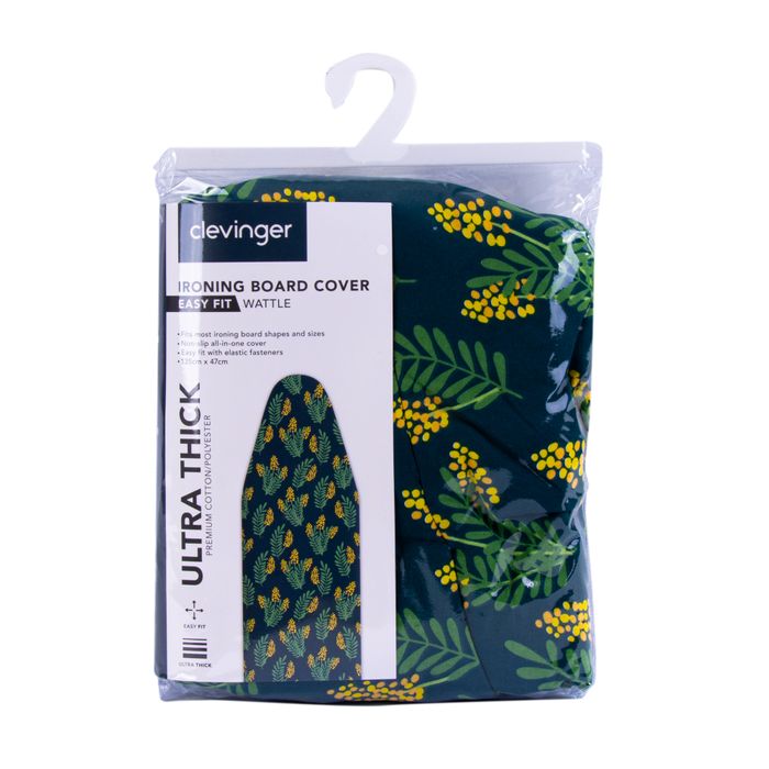 Make ironing a breeze with this generous ironing board cover. Size 47*135cm fits most ironing boards. Felt underlay insulates against heat transfer allowing for stress-free ironing. Contemporary wattle design brings the outdoors in.