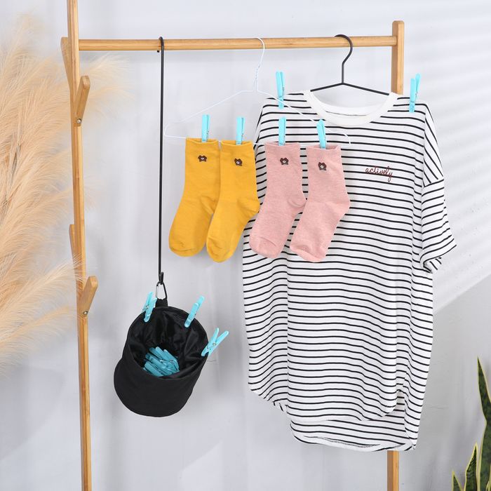 - Complete with draw string with smart carabineer fastener - keeps the clothes pegs clean when not in use, a good helper in life