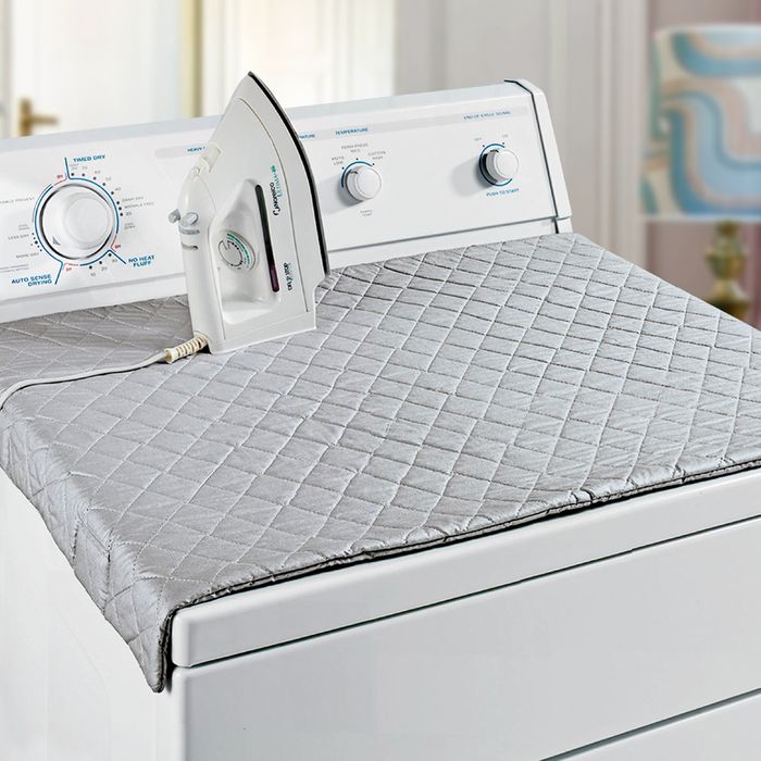 Magnets at the four corners keep the mat in place when using metal surfaces such as washing machine or dryer.