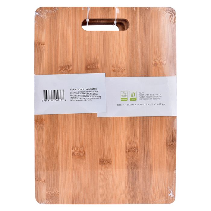 Smart and safe, Uniwide’s 3-piece premium bamboo cutting board set Is designed to meet all your food prep and presentation needs. Made from 100% premium organically grown anti-microbial moso bamboo, this professional high quality cutting board is BPA and toxin-free for superior food safety. Unlike hard plastic or glass boards, bamboo won’t dull your favourite kitchen knives. Uniwide’s cutting boards are all-natural colour, which means no dyes or stains to add unwanted flavours or chemicals to your food. This elegant 2-in-1 reversible design with smooth rounded edges and handles can be used as a serving tray for meats, breads, cheese, wine, fruits and vegetables when entertaining guests. Care instructions: • Handwash only • Not microwave-safe • Not oven-safe • Not dishwasher-safe • Not for stove-top use • Use hot water and soap to wash, and then let the cutting board air dry. Occasionally use mineral oil to extend the life of the cutting boards Specifications: Large: 23.8*32.8*1cm Medium: 21.5*27*1cm Small: 14.7*20*1cm Weight: 1.05kg