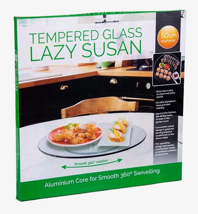Just plonk it on the dining table loaded with favourite finger food and watch everyone swivel it round to get what they want. You can even have it at the games room at while you are playing any games you can have it by your side and have snacks or drinks easily with your friends/siblings. Though it is called lazy, it is the one which helps you out in all the above occasions and makes you feel at ease. It is made of good quality construction with a 50cm diameter and 3mm of thickness and resistance to heat up to 240 degree Celsius. The major advantage of it is the 360 degree swivel makes it convenient for the guests to get their favourite snack easily. So don’t wait anymore go online and order it immediately for yourself as well as for your loved ones! Happy eating! Features: Lovely glass top is easy to clean and adds a stylish look Durable aluminium base provides stability Use it in the kitchen, dining room or even in the game room The convenient swivel design is great for serving bread or condiments at the dinner table The appealing design and quality construction make it a wonderful addition to any home décor Specifications: Size: 50cm Diameter, 3mm of thickness Material: glass top Colour: transparent Package includes: 1x Lazy Susan 50cm Package dimension: 51*51*2.5cm Package weight: 3.33kg