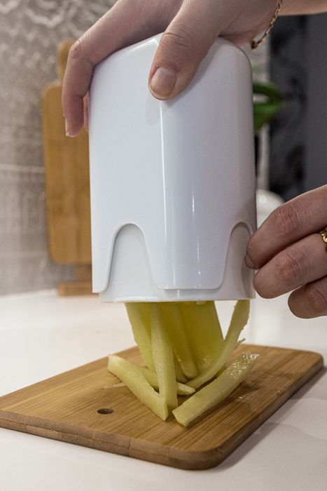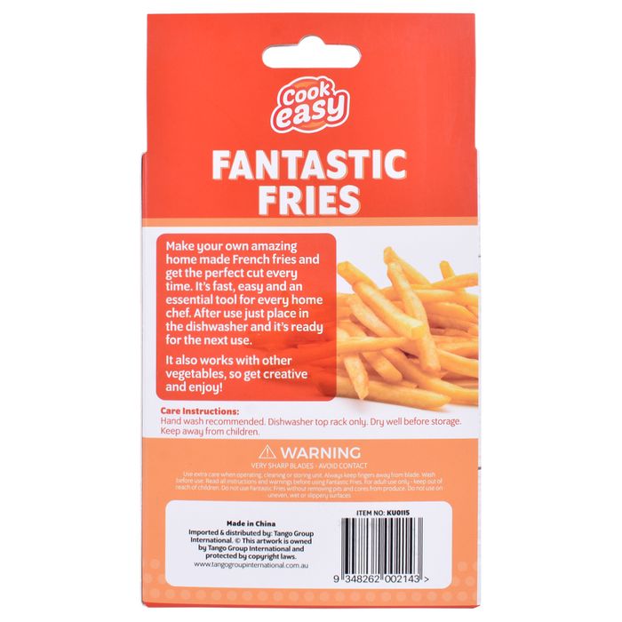 Specifications: Uniwide’s Fantastic Fries is the One-step cutter that slices potatoes or almost any veggie into perfectly shaped fries. No more peeling chopping and slicing by hand! Just “plunge” potatoes down for instant fries. This cutter’s design uses cross pattern steel blades to cut effortlessly and evenly for perfect results every time. Get creative when making sweet potato fries, zucchini fries and best of all this kitchen tool can also be used for other vegetables such as onions, peppers and much more, making meal preparation faster and easier. Features: • Perfect fantastic fries, every time • Fast & easy to use and store • 3 easy steps: place, push and ready to bake – make homemade delicious fries in just seconds • Dishwasher safe • Cross pattern steel blades effortlessly cut potatoes in perfect slices with just one push • Also, great for other vegetables such as: Onions, Peppers, Carrots, Cucumbers, Apples, Pears, Melons and more! • Durable plastic and steel construction Specification: Material: pp + ABS + 301 Stainless steel Colour: white Dimensions: 10 x 8.2 x 17.8 cm Weight: 0.257 kg